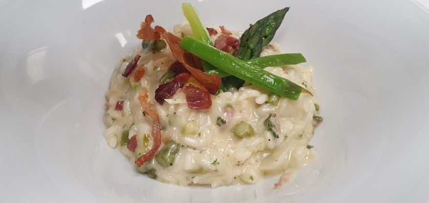 I tavoli sono ben distanziati, e permettono di godere del panorama della roggia e del giardino mentre si ammirano gli impiattamenti sofisticati dei nostri chef, sempre alla ricerca di nuovi gusti e abbinamenti di sapori.